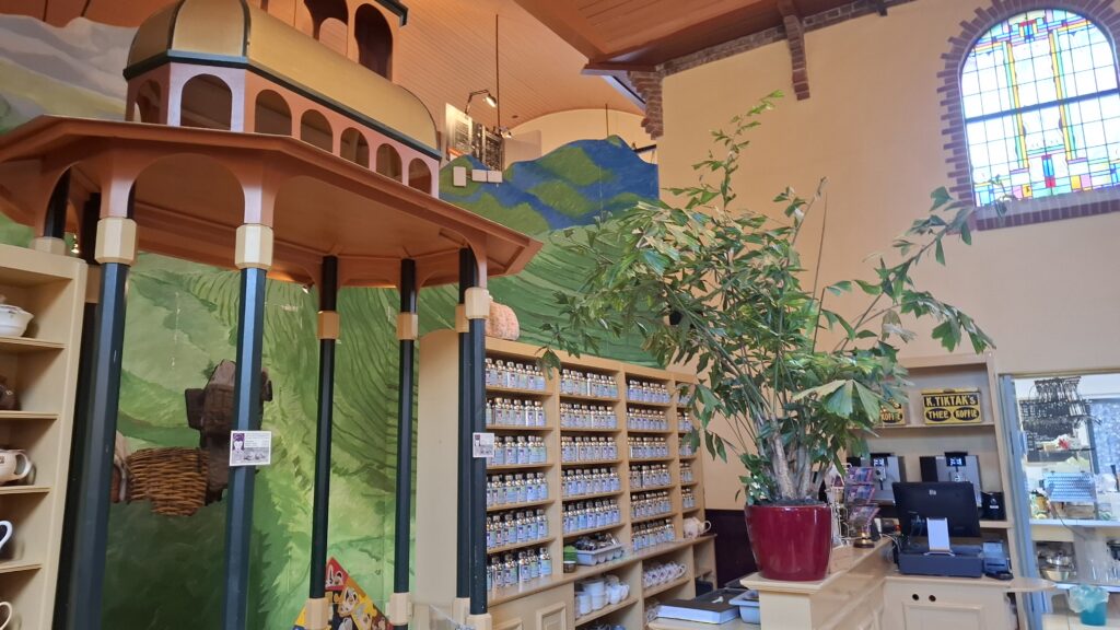 Wat een hoosbui kregen we over ons heen, dit met wind en onweer er bij. We waren echt tot de bot nat, we hadden niet de tijd gehad om onze regenjas aan te doen natuurlijk domme fout van ons. Dus druipend kwamen we aan bij de verzorgingspost in Houwerzijl, hier kochten we ons een appelgebak met slagroom. Dit ging er echt goed in samen met een warmer bak thee, De Theefabriek had hun ruimte beschikbaar gesteld voor deze tocht.